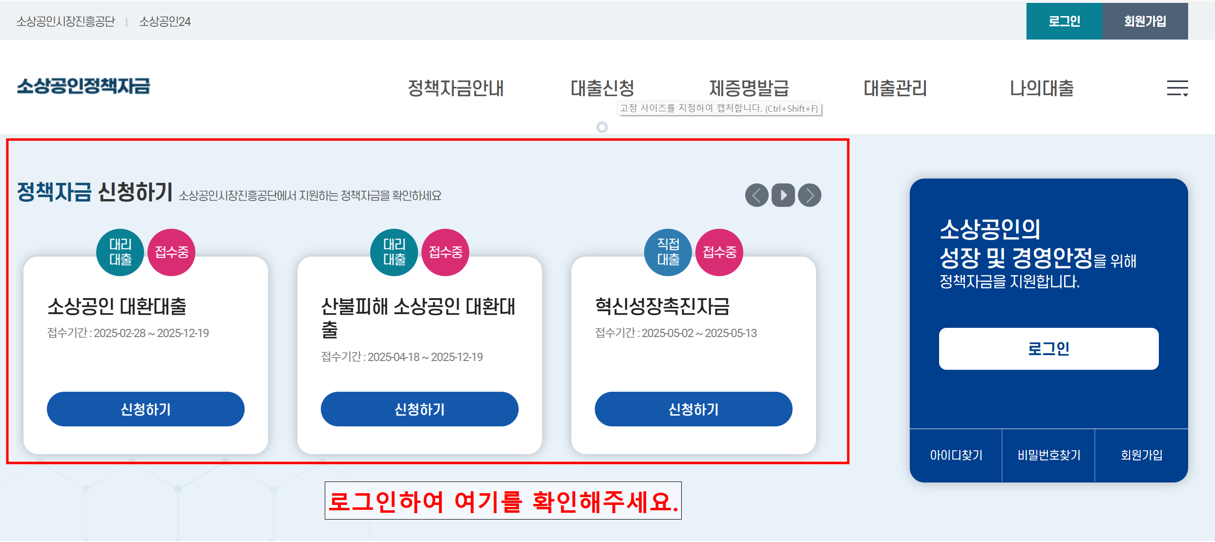 신청 전에 정책자금 안내 사이트에서 필수 조건을 확인하고,