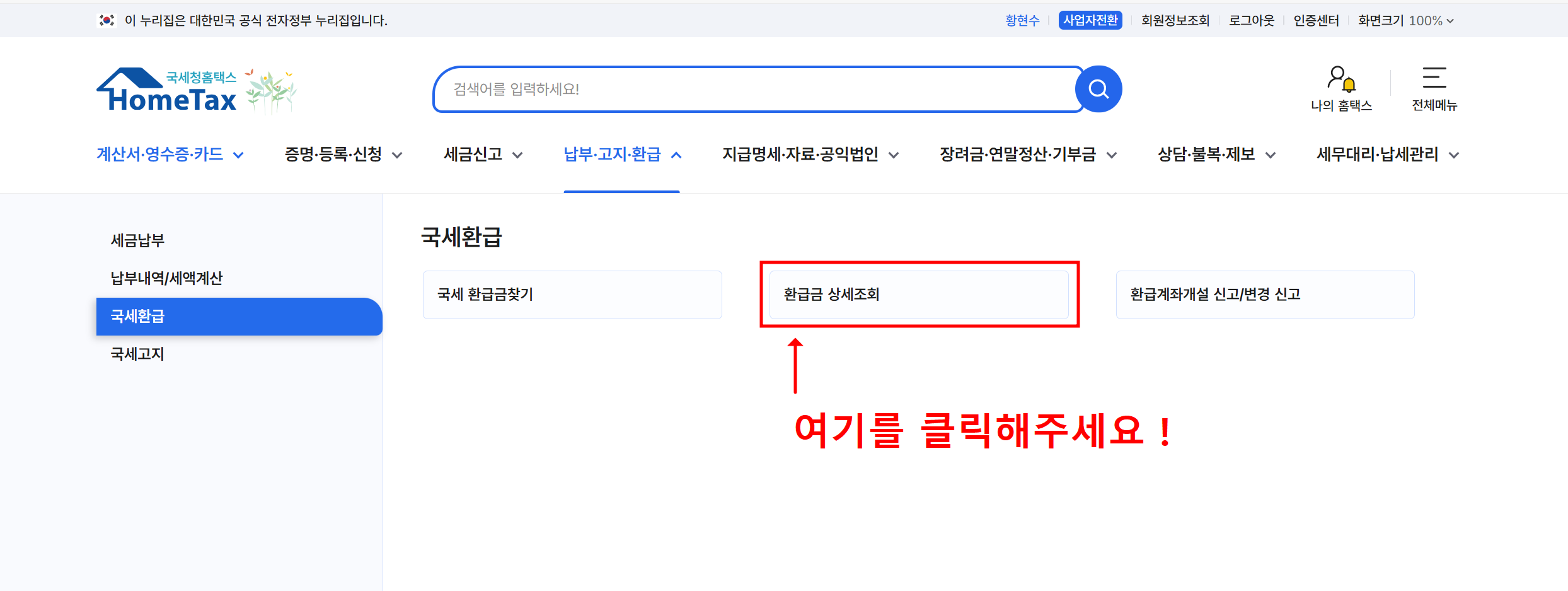 홈택스 > My홈택스 > 환급금 조회에서 확인 가능!