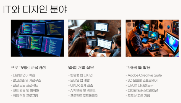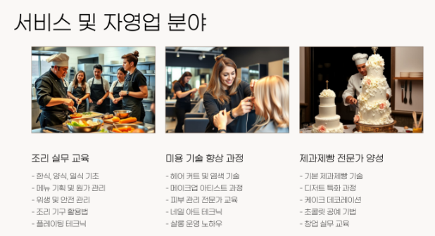 | 공인 오프라인 학원 | 제과제빵, 미용, 용접, 간호조무사 등 |